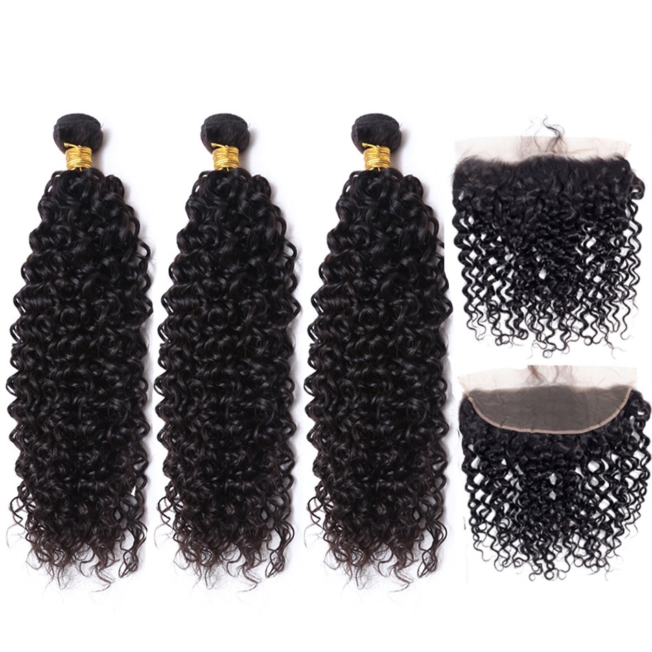 Model Name: Natural Black Jerry Curly Remy Human Hair Bundles With Frontal 13x4
