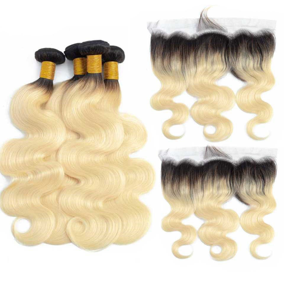 T1B/613 Blonde Body Wave Remy Human Hair Bundles With Frontal 13x4
