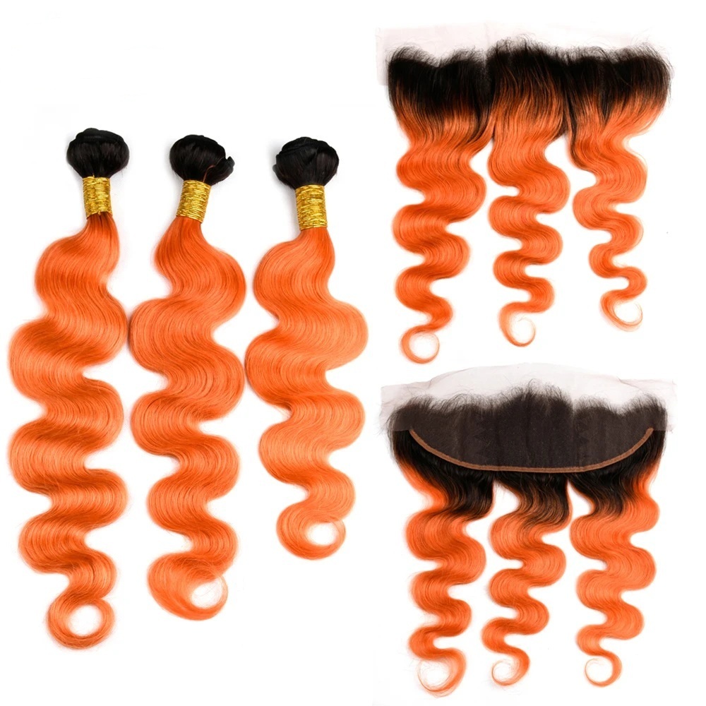 Model Name: T1B/Orange Body Wave Remy Human Hair Bundles With Frontal 13x4